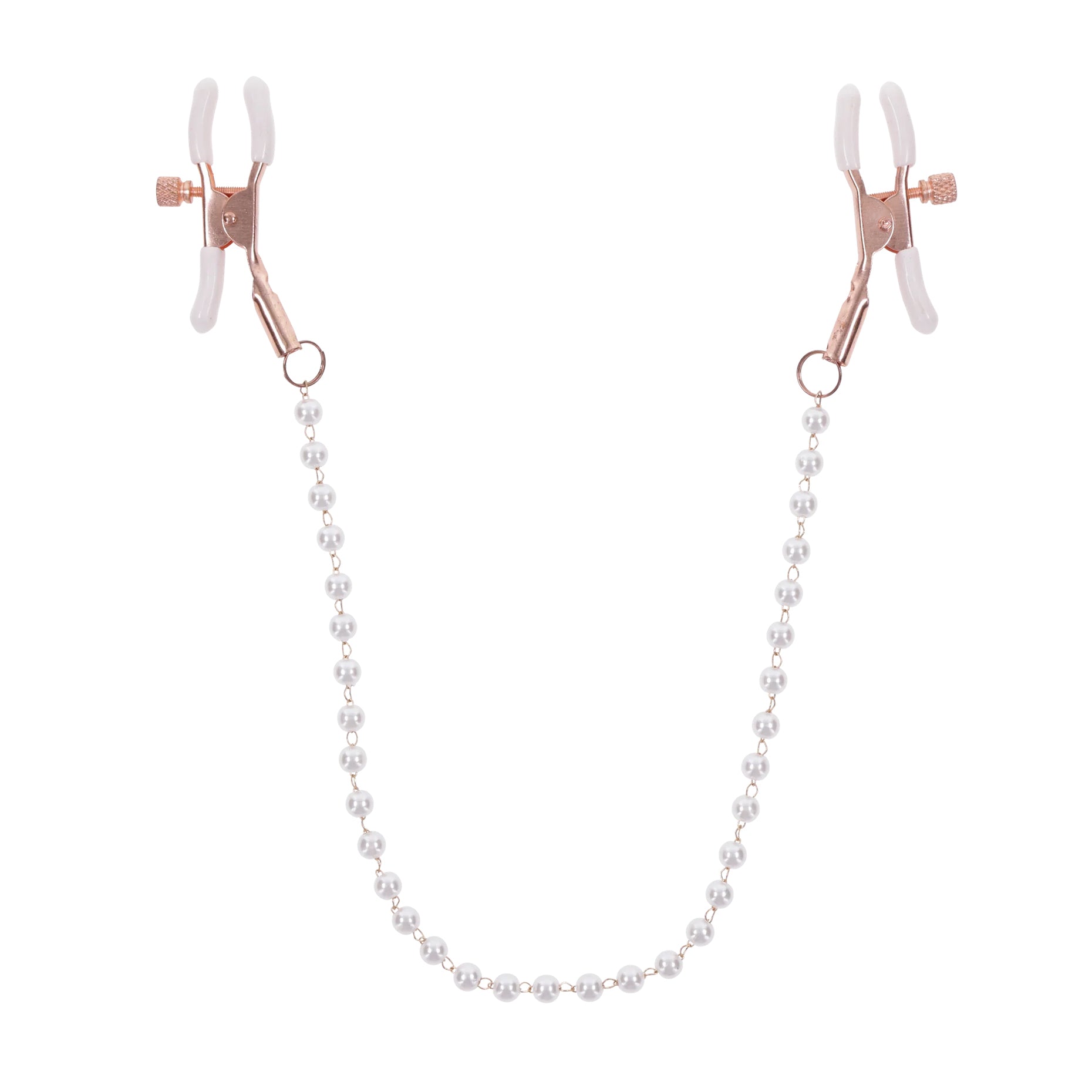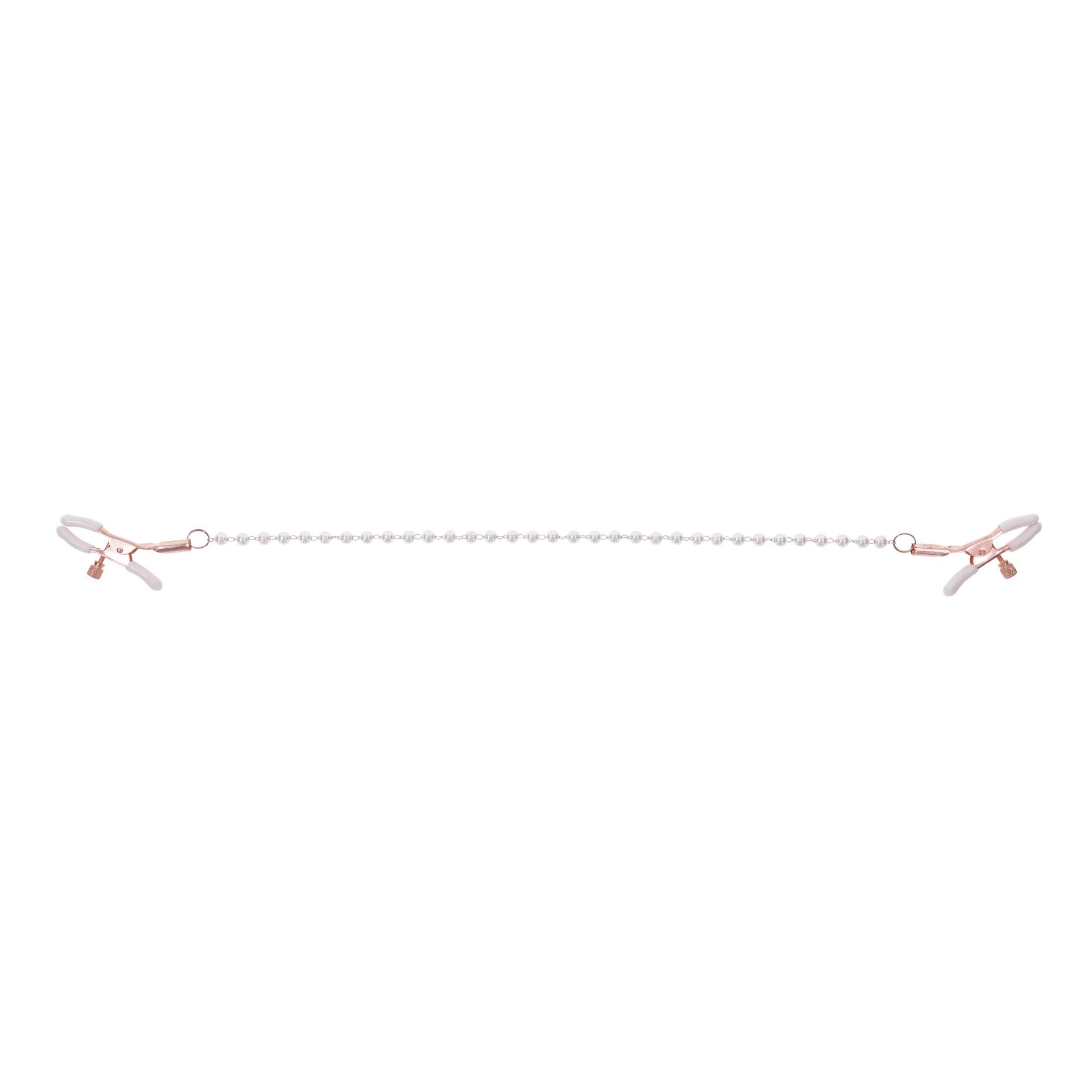 Roségouden luxe – Tepelklemmen met parelketting Verstelbare druk – Van zacht knijpen tot intens Comfortabele tips – Witte rubberen uiteinden Meer gevoeligheid – Versterkt elke aanraking Nikkelvrije materialen – Lichaamsvriendelijk en chic Luxe parelklemmen voor zoete, tintelendespanning Met de S&M Peaches‘n CreaMe Pearl Tepelklemmen voeg je een verleidelijk vleugje luxe toe aan jullie spel. De roségouden ketting, versierd met glanzende parels, slingert elegant tussen de tepels terwijl de klemmen precies daar knijpen waar jij het het meest voelt. Elke beweging, elke ademhaling, elke aanraking wordt direct intenser. De verstelbare schroefjes op de klemmen laten je zelf bepalen hoeveel druk je wilt: van subtiel, prikkelend knijpen tot een diepere, zinderende sensatie. Zo zijn deze nipple clamps perfect voor zowel nieuwsgierige beginners als ervaren BDSM-liefhebbers die hun tepelspel naar eenhoger niveau willen tillen. Stijlvol, sensueel en heerlijk functioneel De witte rubberen uiteinden zorgen ervoor dat de klemmen comfortabel aanvoelen en goed blijven zitten, zonder weg te glijden. Trek speels aan de roségouden ketting om de druk te verhogen en zie hoe de prikkeling zich doorhet lichaam van je geliefde verspreidt. De elegante parels geven jullie kinky spel een chique, bijna juweelachtige uitstraling – ideaal in combinatie met lingerie, bondage of een verleidelijke outfit. Of je nu speelt met zachte teasing of gaat voor intense nipple play: de Peaches ‘n CreaMe Pearl Tepelklemmen zorgen voor een perfecte mix van luxe en opwinding. Bij sexshop Erovibes bestel je ze discreet, snel en direct uit voorraad, zodat je niet lang hoeft te wachten om de spanning op te voeren. Specificaties&afmetingenType: tepelklemmen met ketting Ketting: roségoud gekleurd, versierd met parels Klemmen: verstelbaar met schroefje voor druk naar wens Tips: witte rubberen uiteinden voor extra comfort en grip Materiaal klem/ketting: nikkelvrij metaal Overige materialen: 54% polyurethaan, 45% PVC, 1% staalGebruik: tepelstimulatie, BDSM, lingerie accessoire Niveau: geschikt voor beginners en gevorderden